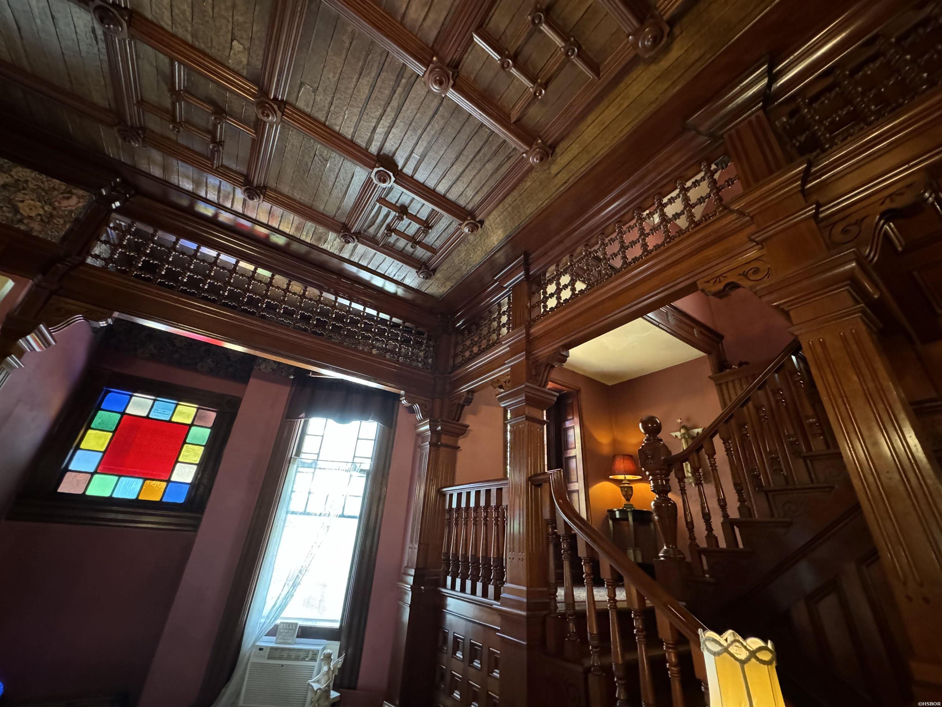 The curtain rises on the second level, the true formal entry. Here, the flow is nothing short of operatic. We are introduced to the Prima Ballerina of the residence: a formal staircase of such hand-carved audacity, crowned by a coffered veneer ceiling, that it threatens to upstage every other room. Two parlors engage in a dialogue of space and light, warmed by the crackle of three separate fireplaces—an ensemble cast of hearths providing the thermal rhythm of the scene. The dining room and butler’s pantry execute a seamless pas de deux, aided by a charming character actor: the working dumbwaiter, ensuring the kitchen’s heavy lifting happens delightfully off-stage.